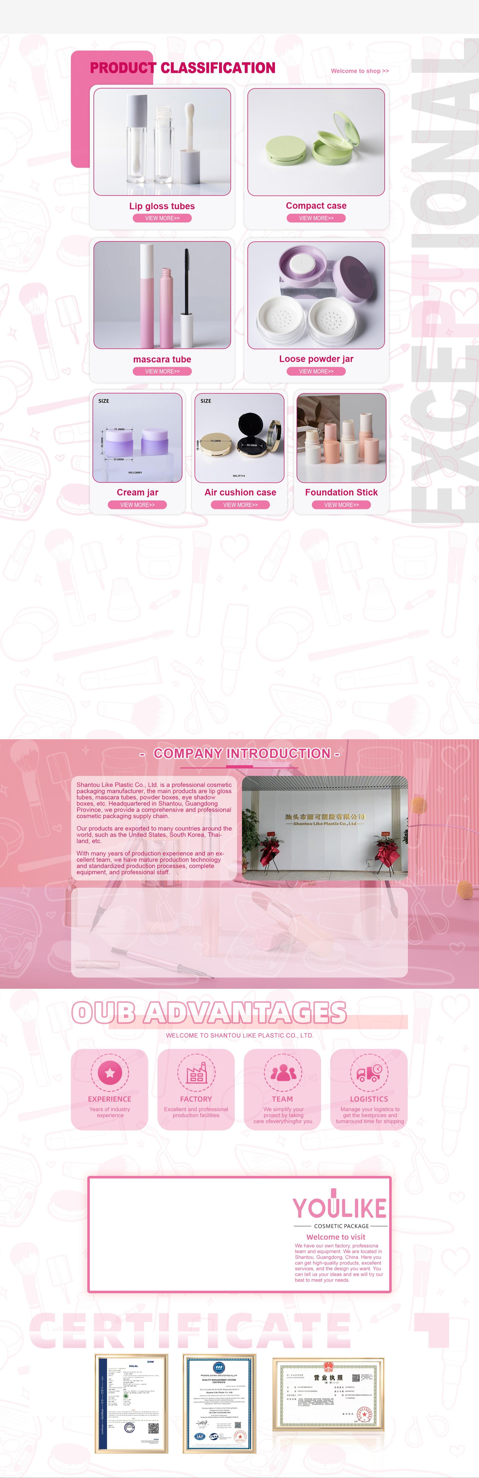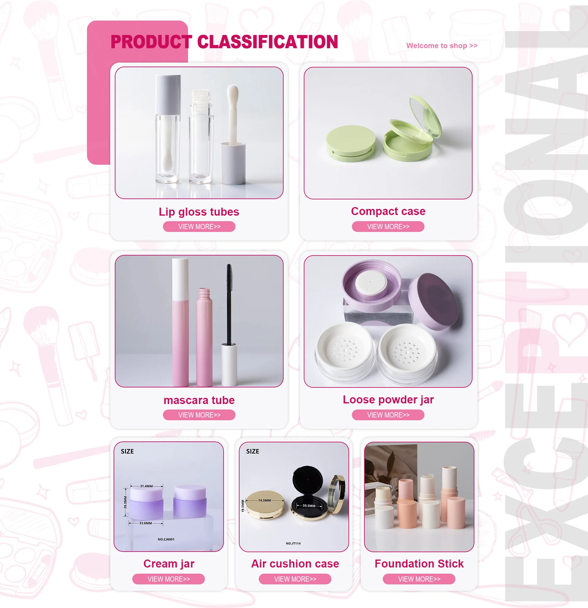 Productos principales:Estuche compacto, tubo de brillo de labios, tubo de delineador de ojos, tubo de máscara, tarro de polvo suelto